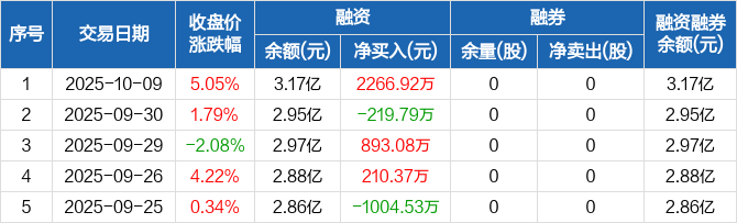 中元股份:融资净买入2266.92万元,融资余额3.17亿元(10-09)