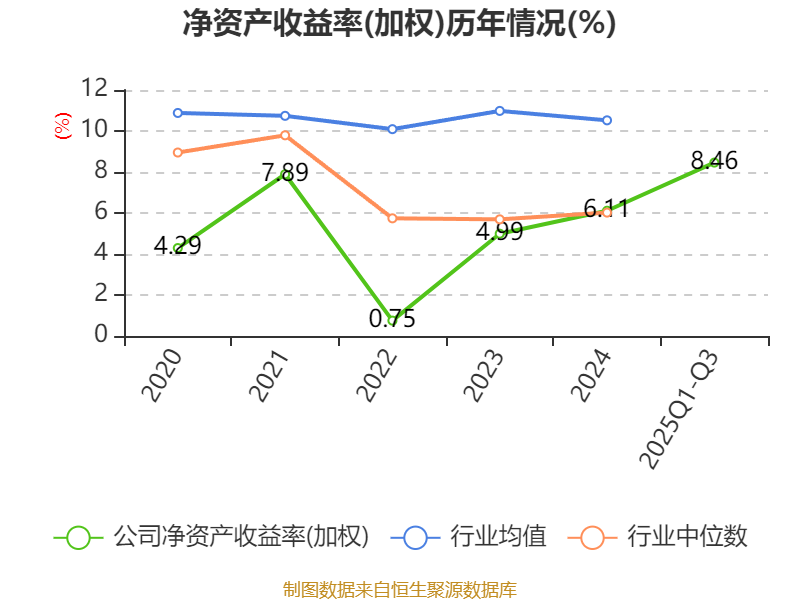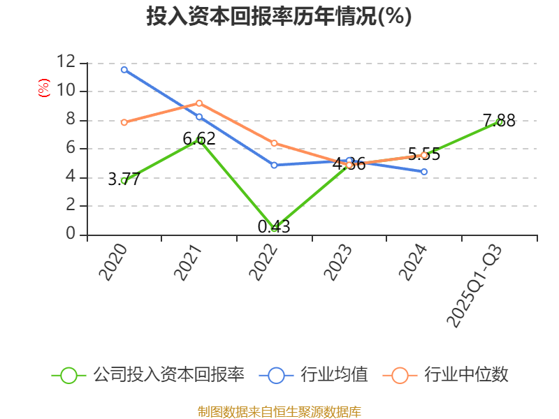 盈利能力方面, 2025年前三季度公司加权平均净资产收益率为8.46%,同比上升3.13个百分点。公司2025年前三季度投入资本回报率为7.88%,较上年同期上升3.23个百分点。