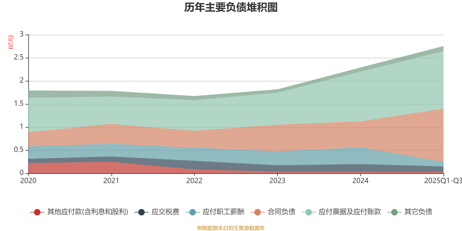 负债重大变化方面,截至2025年三季度末,公司合同负债较上年末增加105.06%,占公司总资产比重上升3.24个百分点;应付职工薪酬较上年末减少73.49%,占公司总资产比重下降1.81个百分点;应付票据及应付账款较上年末增加15.92%,占公司总资产比重上升0.42个百分点;应交税费较上年末减少28.95%,占公司总资产比重下降0.38个百分点。