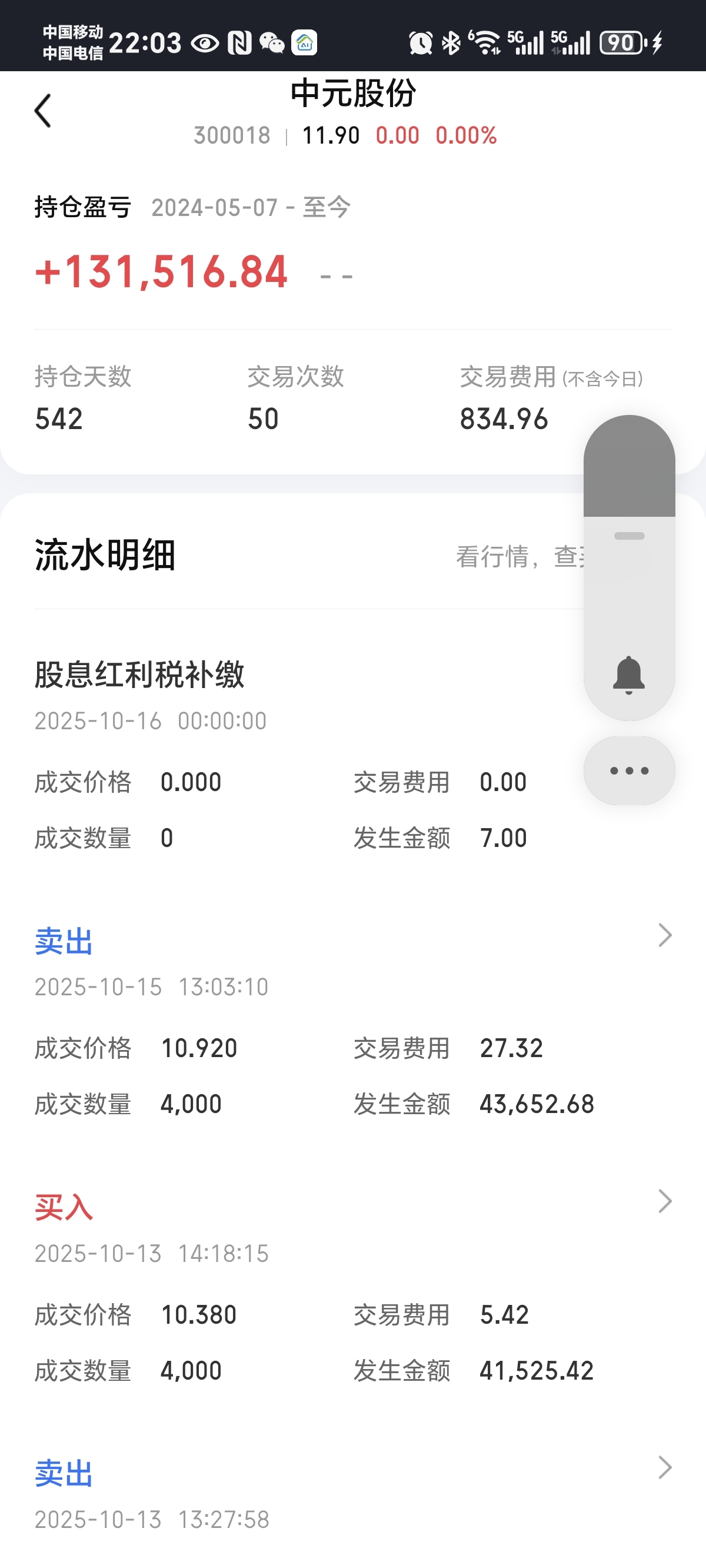 $中元股份(SZ300018)$ 去年生日那天买的中元,买进卖出做波段到今天,上月出了一大半,还剩一万股,想等他回调,没想到这波不下来了,现在成本是负的了