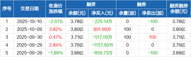硅宝科技:融资净偿还225.14万元,融资余额3.78亿元(10-10)