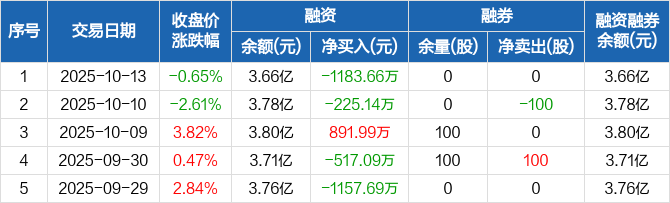 硅宝科技:融资净偿还1183.66万元,融资余额3.66亿元(10-13)