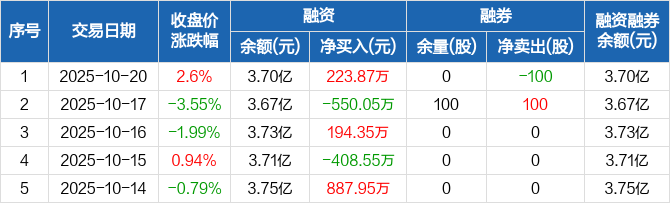 硅宝科技:融资净买入223.87万元,融资余额3.7亿元(10-20)
