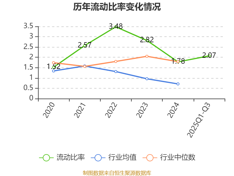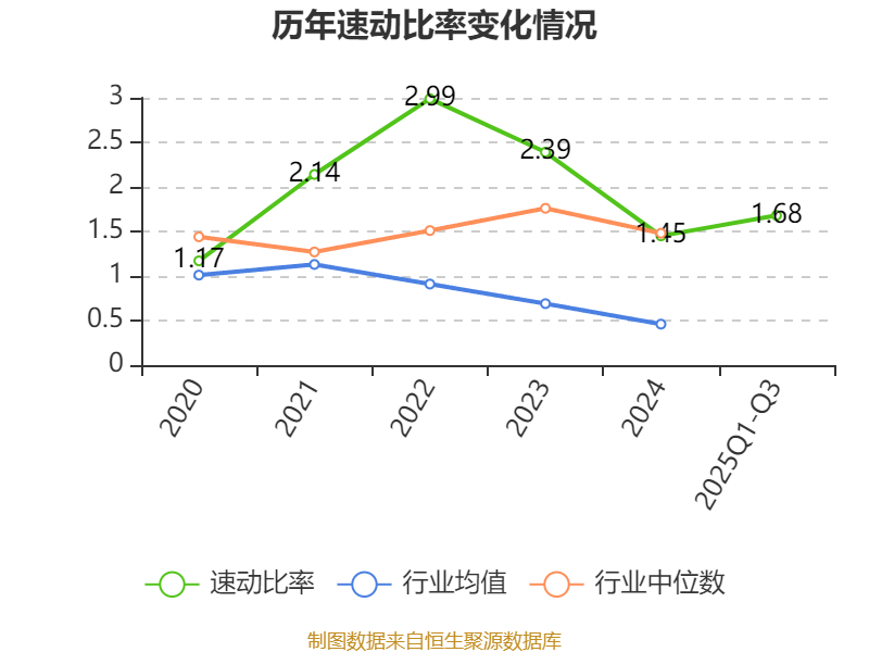 2025年前三季度,公司流动比率为2.07,速动比率为1.68。