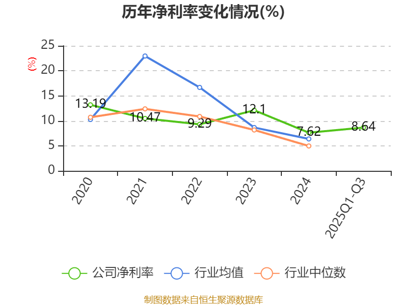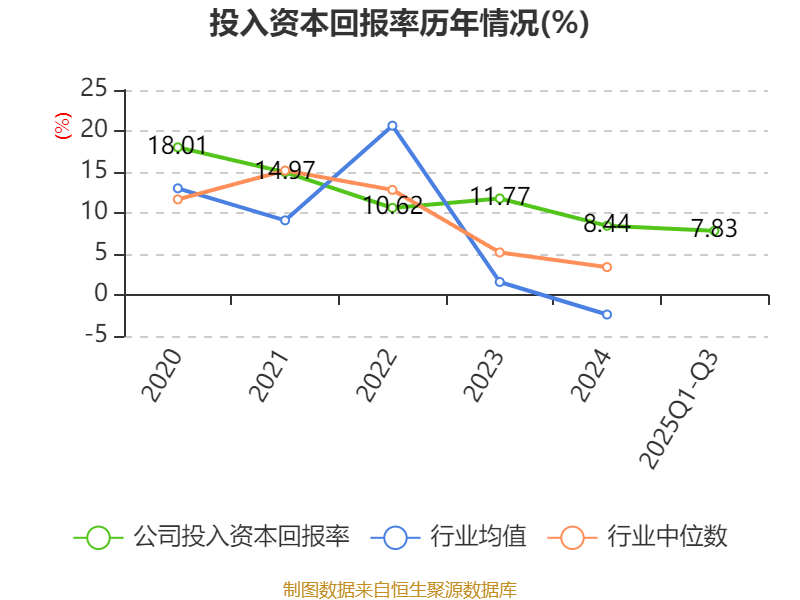 盈利能力方面, 2025年前三季度公司加权平均净资产收益率为8.74%,同比上升2.28个百分点。公司2025年前三季度投入资本回报率为7.83%,较上年同期上升2.41个百分点。