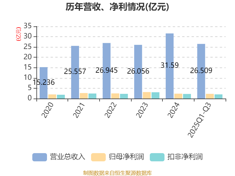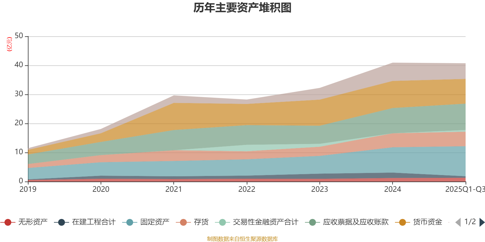 资产重大变化方面,截至2025年三季度末,公司固定资产较上年末增加18.72%,占公司总资产比重上升4.12个百分点;在建工程合计较上年末减少72.19%,占公司总资产比重下降3.29个百分点;一年内到期的非流动资产较上年末增加390.99%,占公司总资产比重上升2.11个百分点;其他债权投资较上年末减少80.52%,占公司总资产比重下降2.08个百分点。