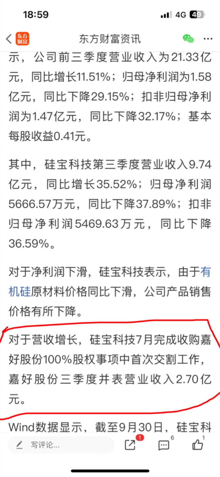 $硅宝科技(SZ300019)$ 二季度营收9.1,三季度9.4,去年三季度是并表多了2.7亿。想唱空?明天涨停价拿货吧