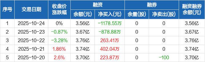 硅宝科技:融资净偿还1178.55万元,融资余额3.56亿元(10-24)