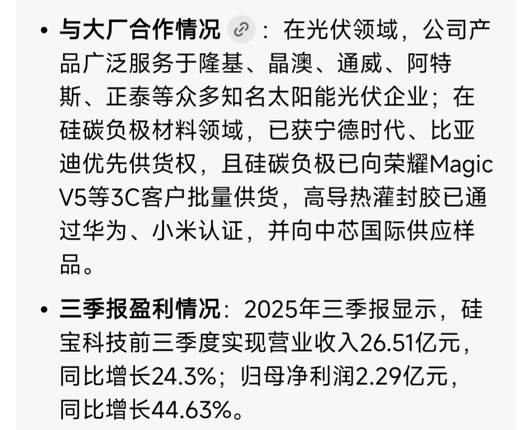 $硅宝科技(SZ300019)$ 无需多言,拿着等新高就行了。硅宝在新能源、汽车、电池、手机、机器人、军工、有机硅领域里都是佼佼者!要技术有技术,要订单有订单,要合作有合作,要创新有创新,还是十五五重点提到的新材料领域,无敌!