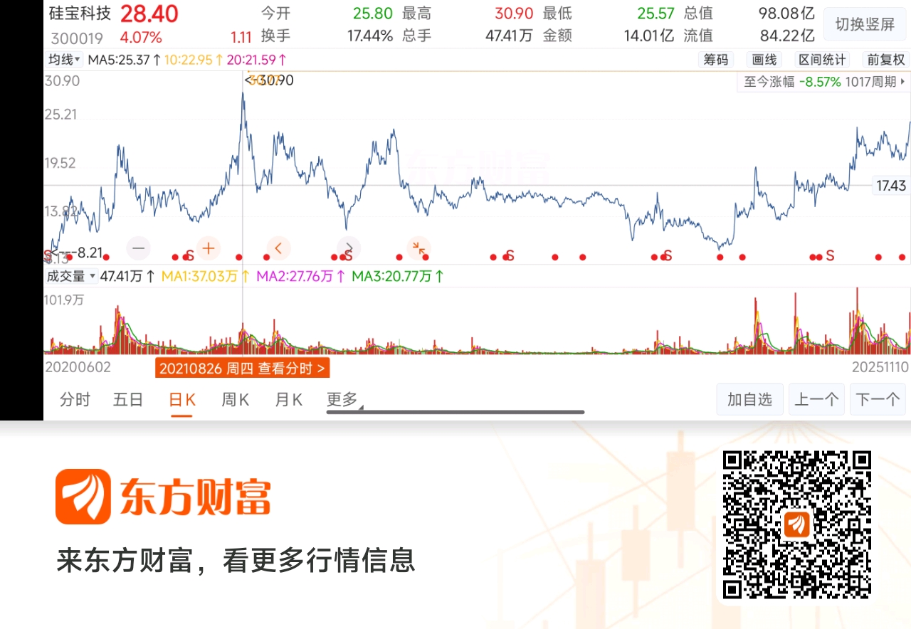 现价24.95距离前高30.9只有23.8%了这跟14亿量有了怕什么?