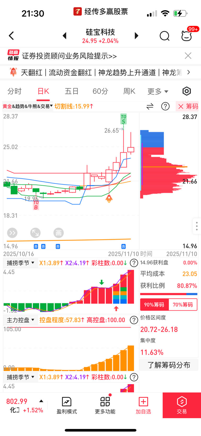 $硅宝科技(SZ300019)$ 底部筹码密集,怕个球,明日低开加仓干