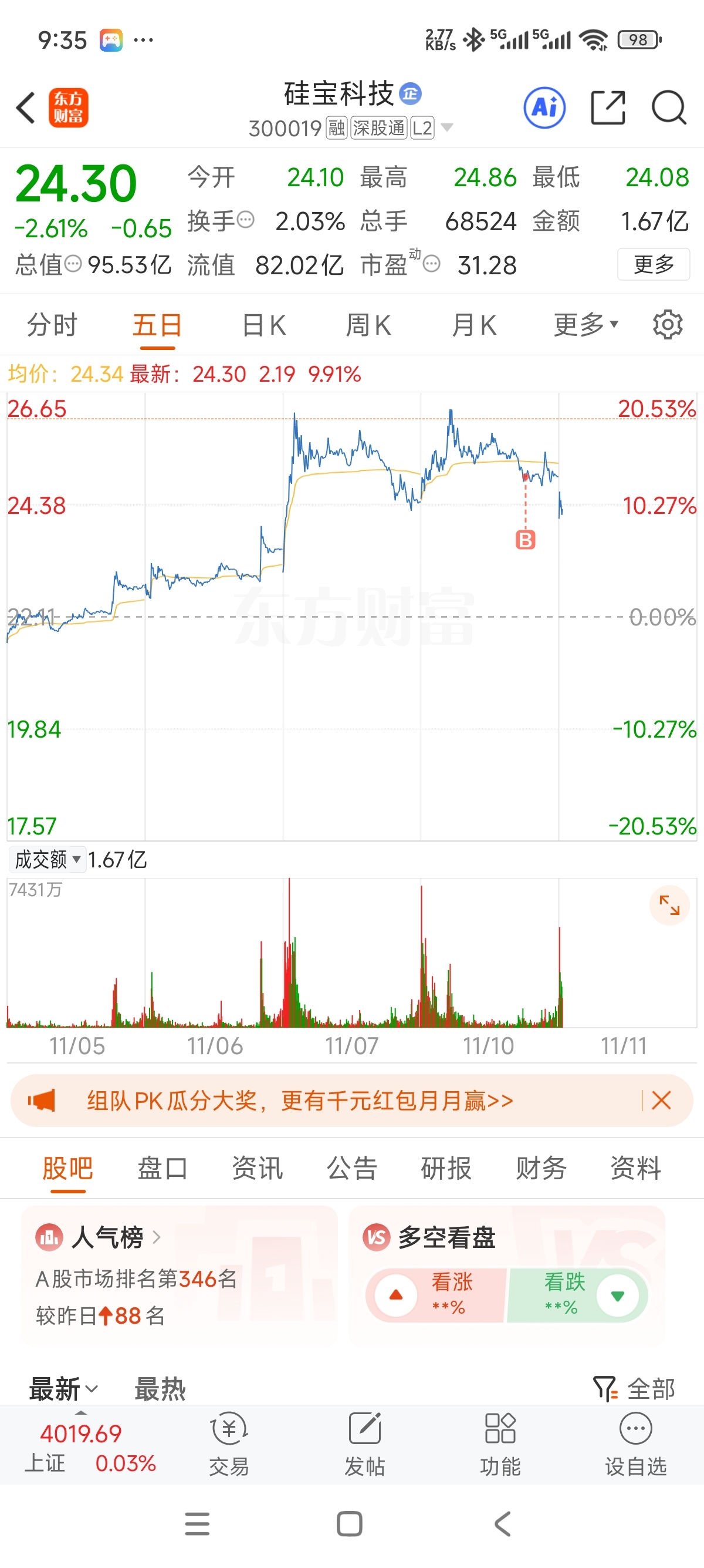 $硅宝科技(SZ300019)$ 兄弟们别慌,我又进来站岗了