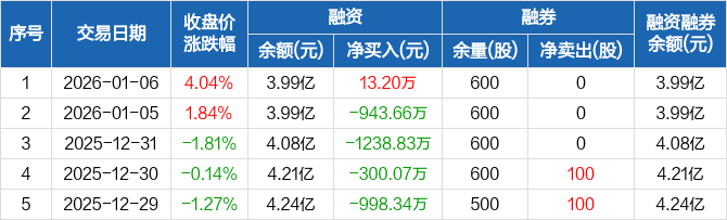 硅宝科技:融资净买入13.2万元,融资余额3.99亿元(01-06)