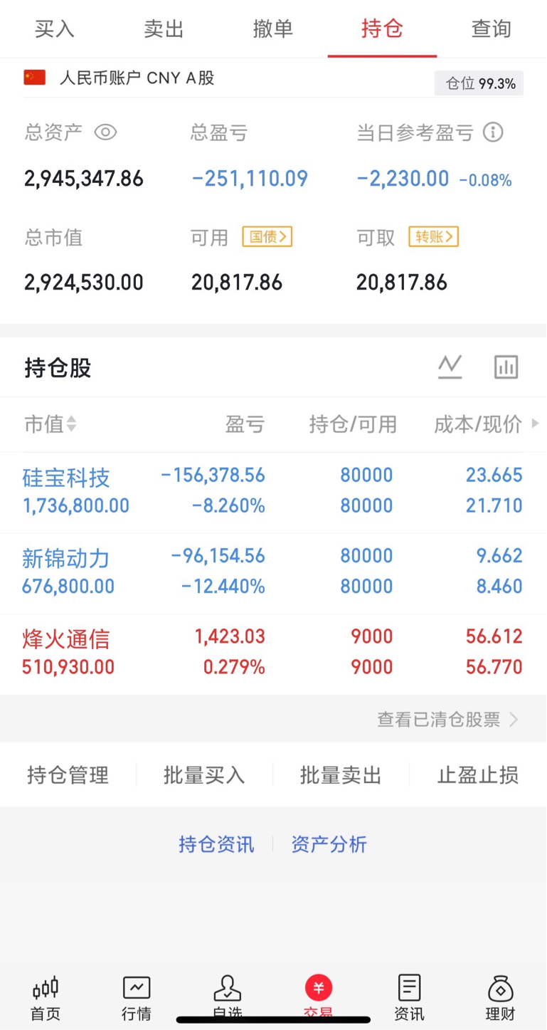 300w本金记录翻5倍(第8天)今日持仓票:硅宝kj、新锦dl、烽火tx今日总资