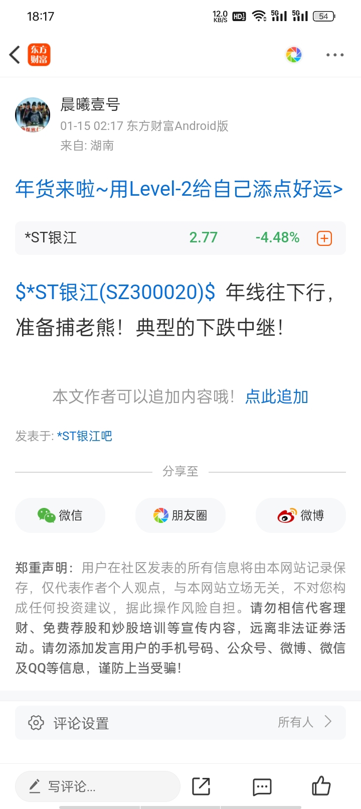 温馨提示: 1.根据《证券法》规定,禁止编造、传播虚假信息或者误导性信息,扰乱证券市场;2.用户在本社区发表的所有资料、言论等仅代表个人观点,与本网站立场无关,不对您构成任何投资建议。用户应基于自己的独立判断,自行决定证券投资并承担相应风险。《东方财富社区管理规定》
