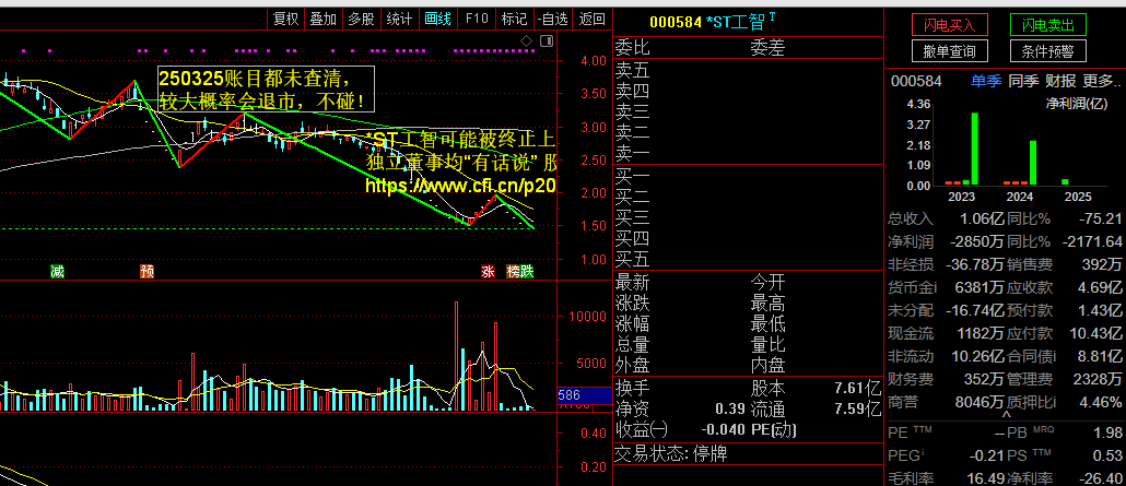 银江比哈工好得多呢!我一个月前就批注哈工智能“250325账目都未查清,较大概率会退市,不碰!”