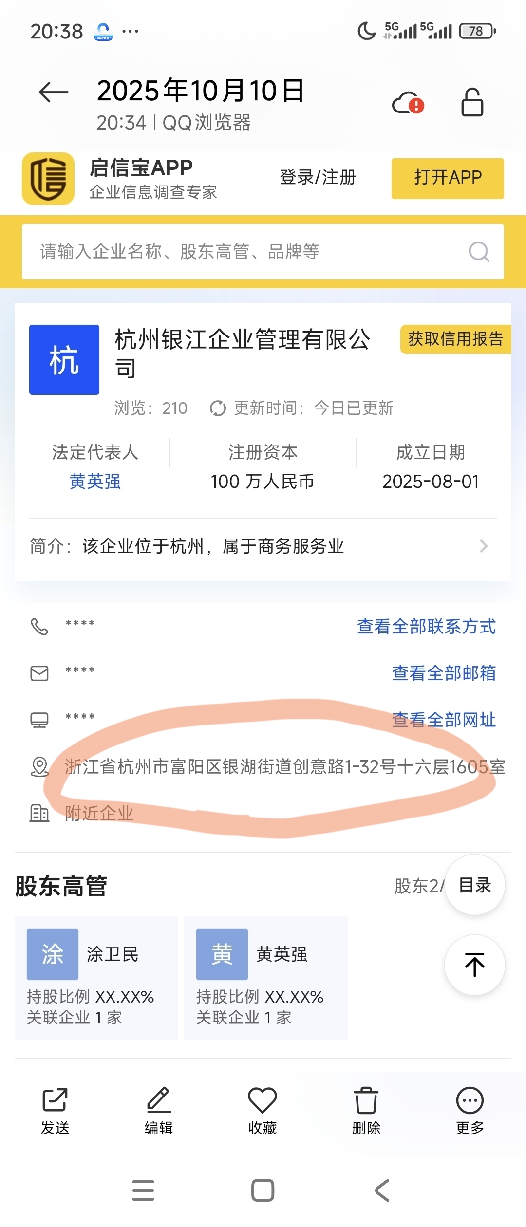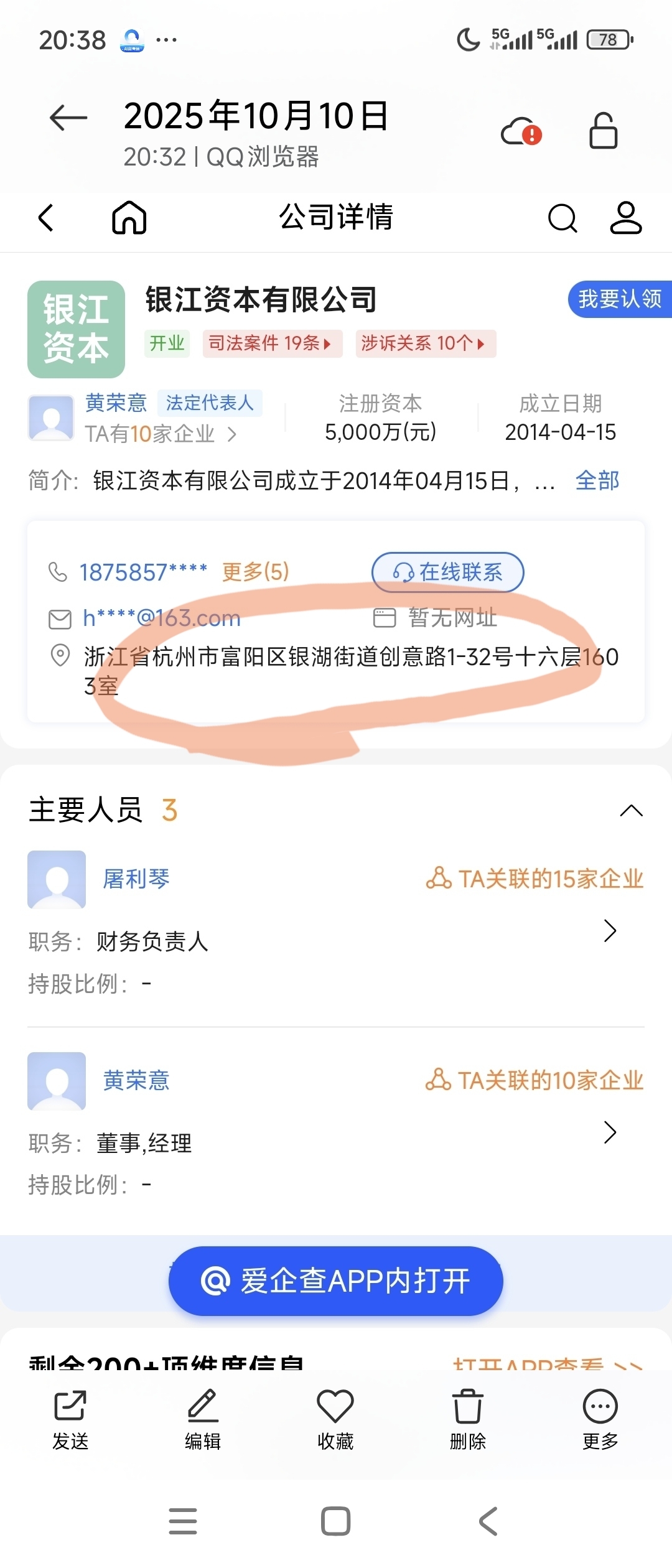 估计银江企业管理公司是银江资本的子公司,要不怎么是一个1603室,一个1605室