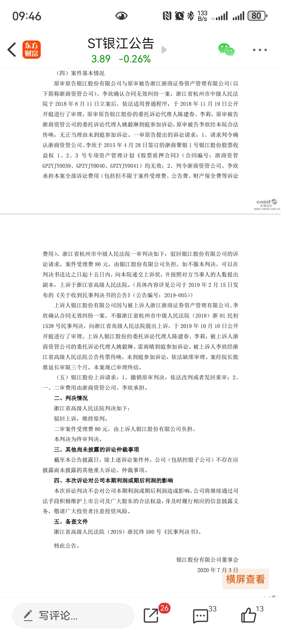 这个判决是终审判决,银江已经不能起诉撤销股份了,已经明确股份归浙商资管所有了。