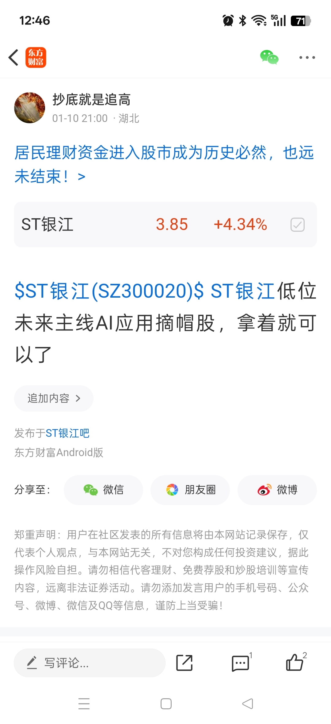 $ST银江(SZ300020)$ 小庄压不住的,今年正宗AI应用是主线,1倍市净率的主线加换实控人加利空出尽,拿着就是了
