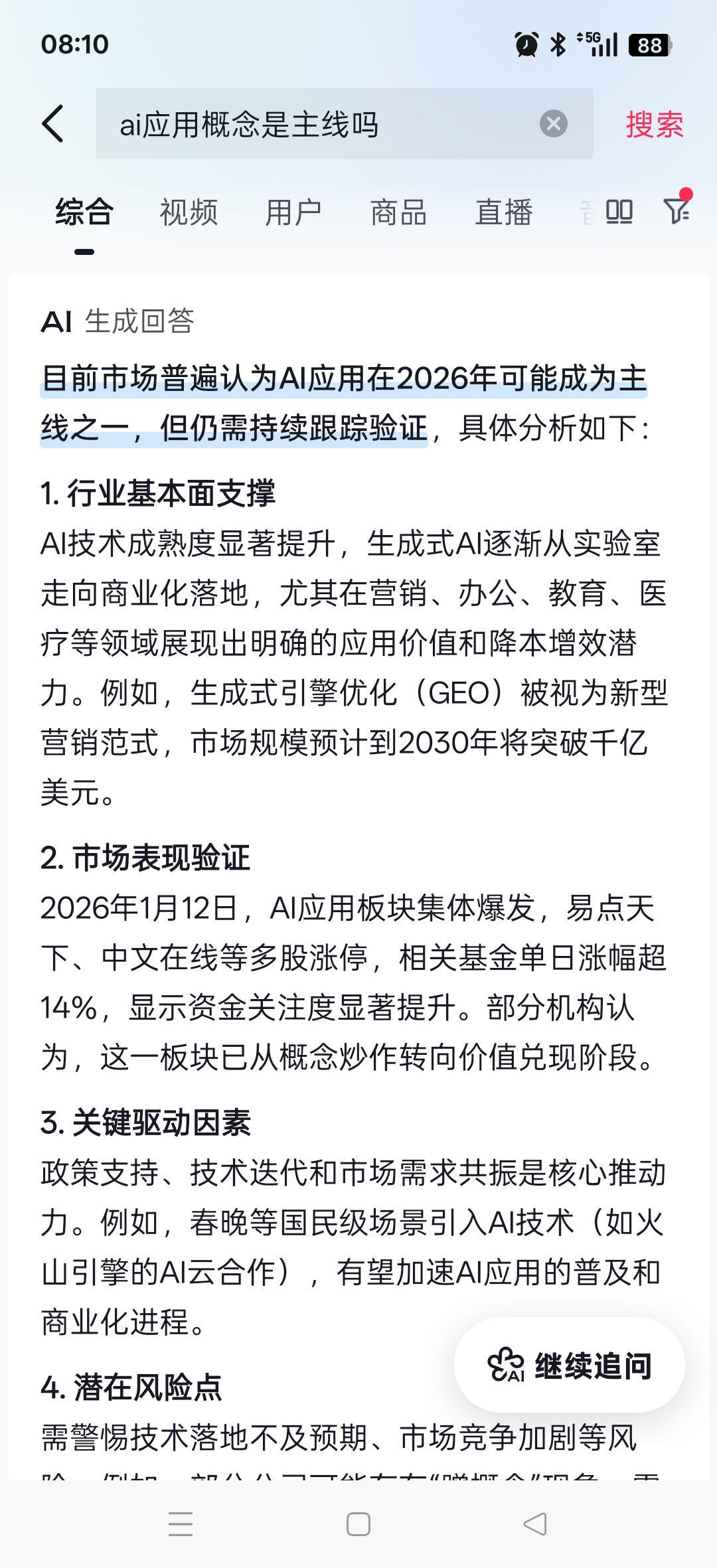 $ST银江(SZ300020)$ 豆包认为AI应用是主线