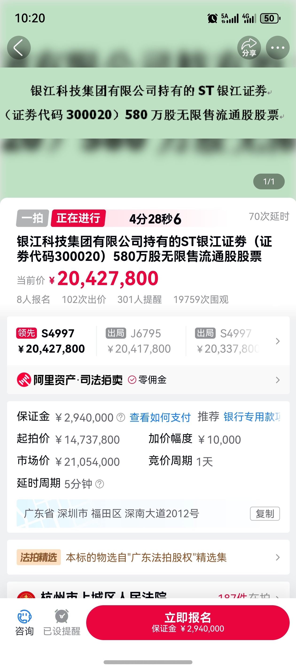 $ST银江(SZ300020)$ 2042/580=3.52了 这是还是拍卖