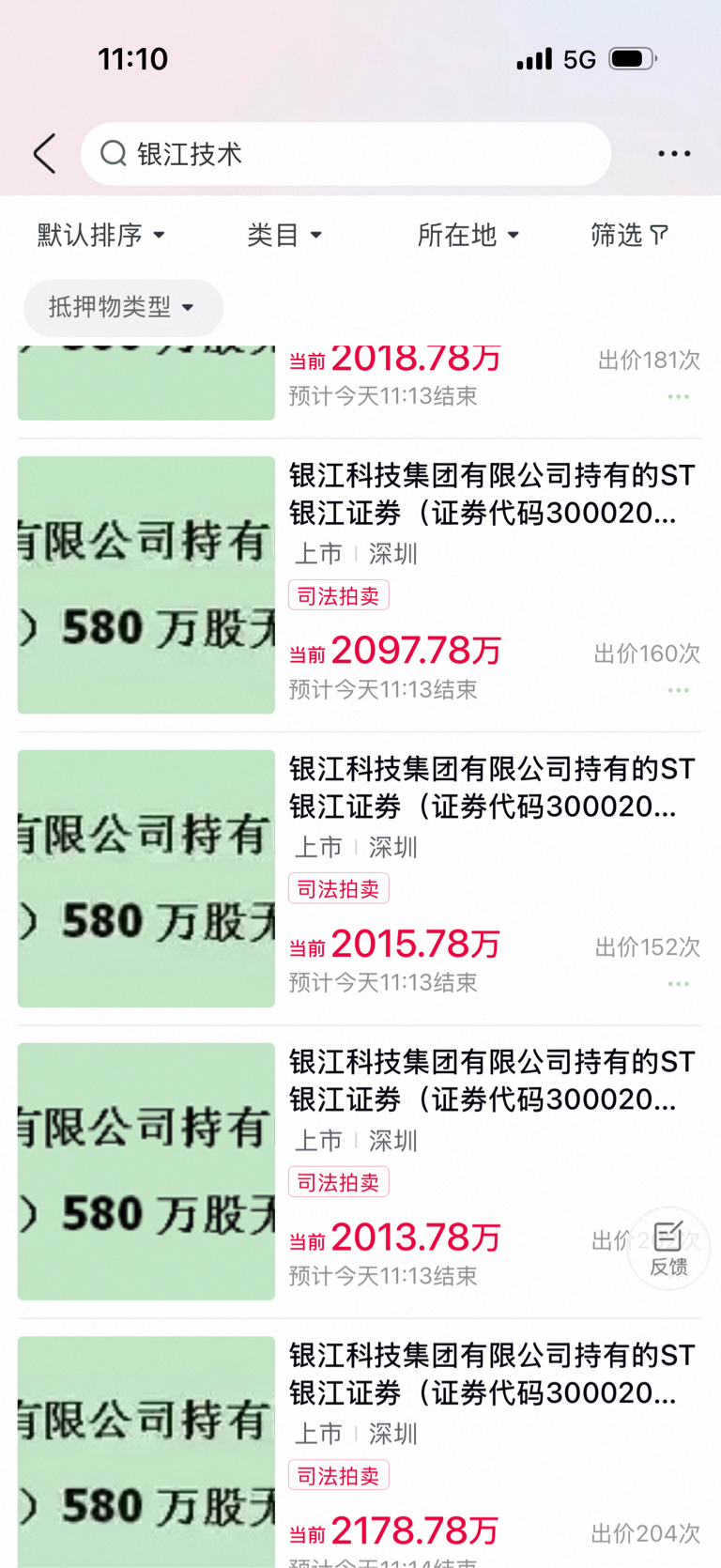 $ST银江(SZ300020)$ 当前的拍卖报价全部上2000万了,按照目前最低的报价,折合每股也要3.47元。