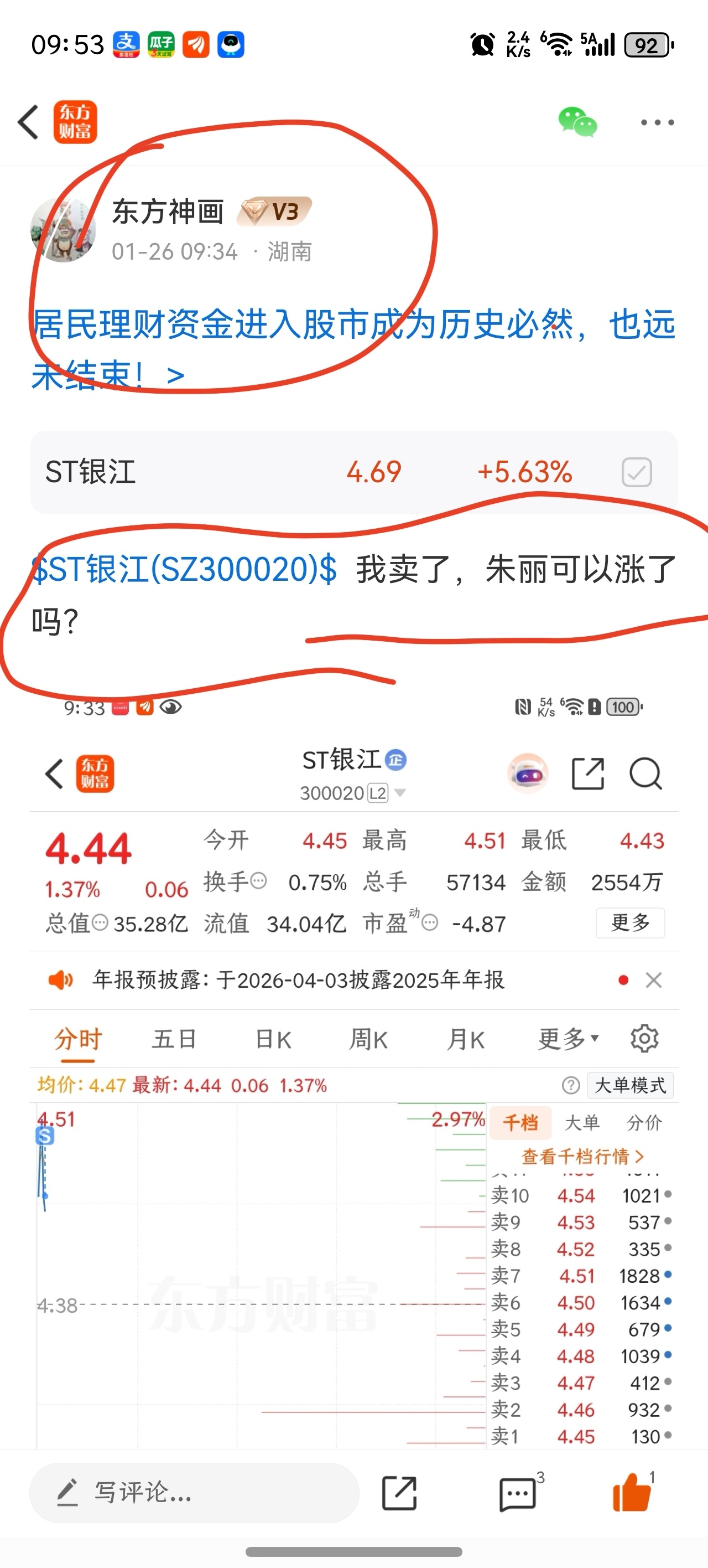 $ST银江(SZ300020)$ 荫降,你!只要我一卖你就会连续的拉!我现在在考虑要不要买一点!!!
