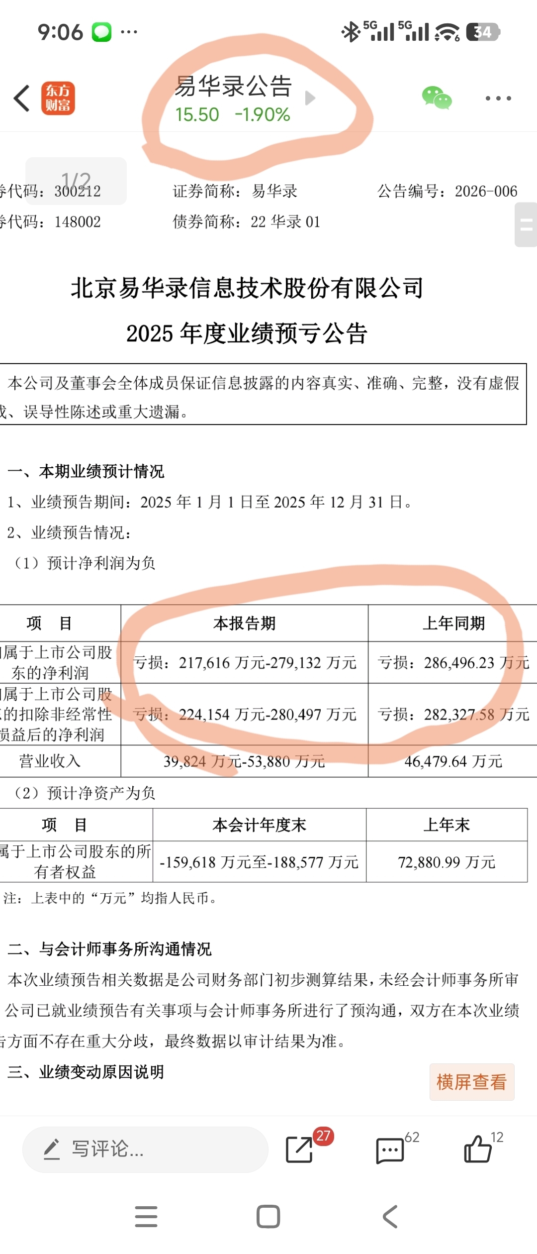 $ST银江(SZ300020)$ 同样是行业相似,智慧城市,智慧交通,总股本和银江一样都是七亿多的易华录,去年就亏了20多亿,今年又亏了20多亿,易华录大部分时间都是在20元以上的,再说易华录要带帽,银江要摘帽,你说谁低估谁高估?