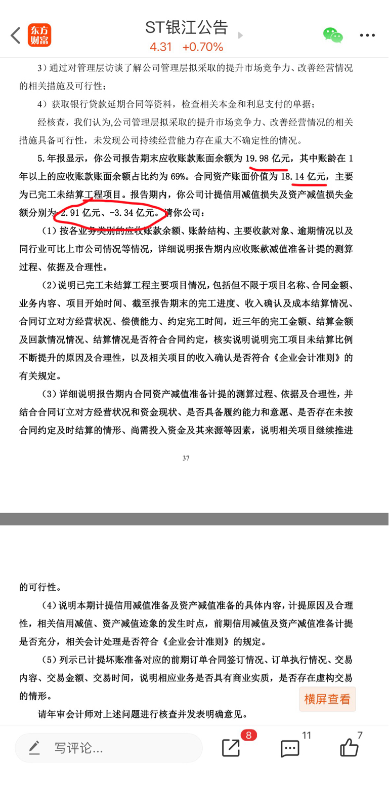 $ST银江(SZ300020)$ 去年年报就说明了应收账款.+合同资产累计27亿左右,计提6个多亿,那时候也有问询函,大家可以去查5月24日的问询函回复,所以今年年报肯定有问询函,毕竟要摘帽了,只是姚太狠了一上位这一次全给计提了,为啥不慢慢来呢?