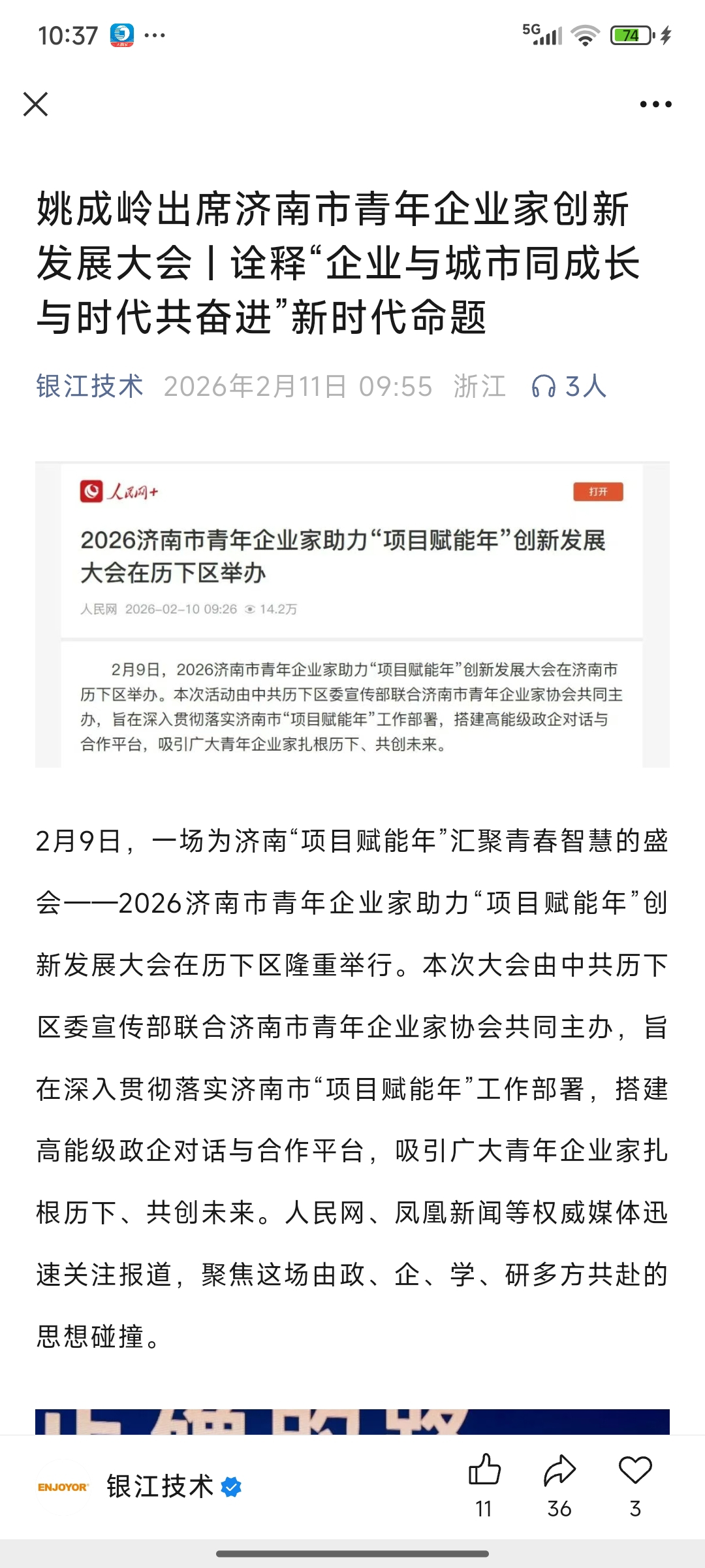 $ST银江(SZ300020)$ 山东省政协委员,山东省青年企业家协会副会长银江新董事长姚总,民营企业家,应该可以吧?