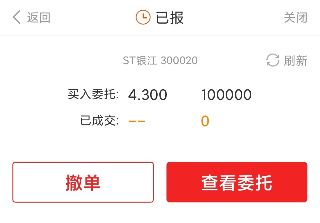 $ST银江(SZ300020)$ 年前最后一天交易,侠哥为股友们托底尽点绵薄之力,430接1000手,当然435也可以接受。