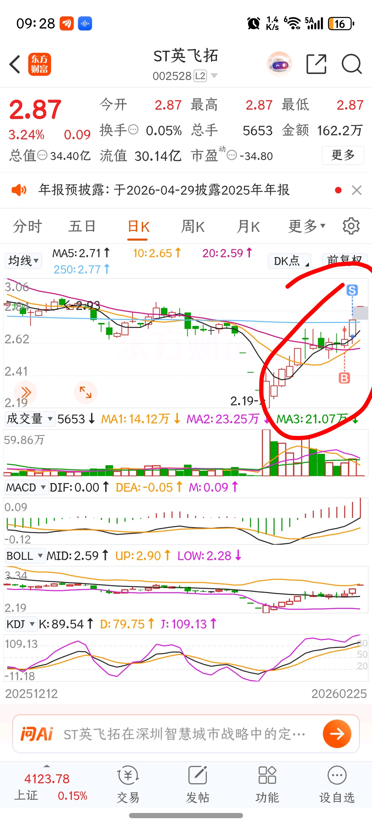 我也是服了这个英飞拓了,我一卖就涨,这st股真难做!