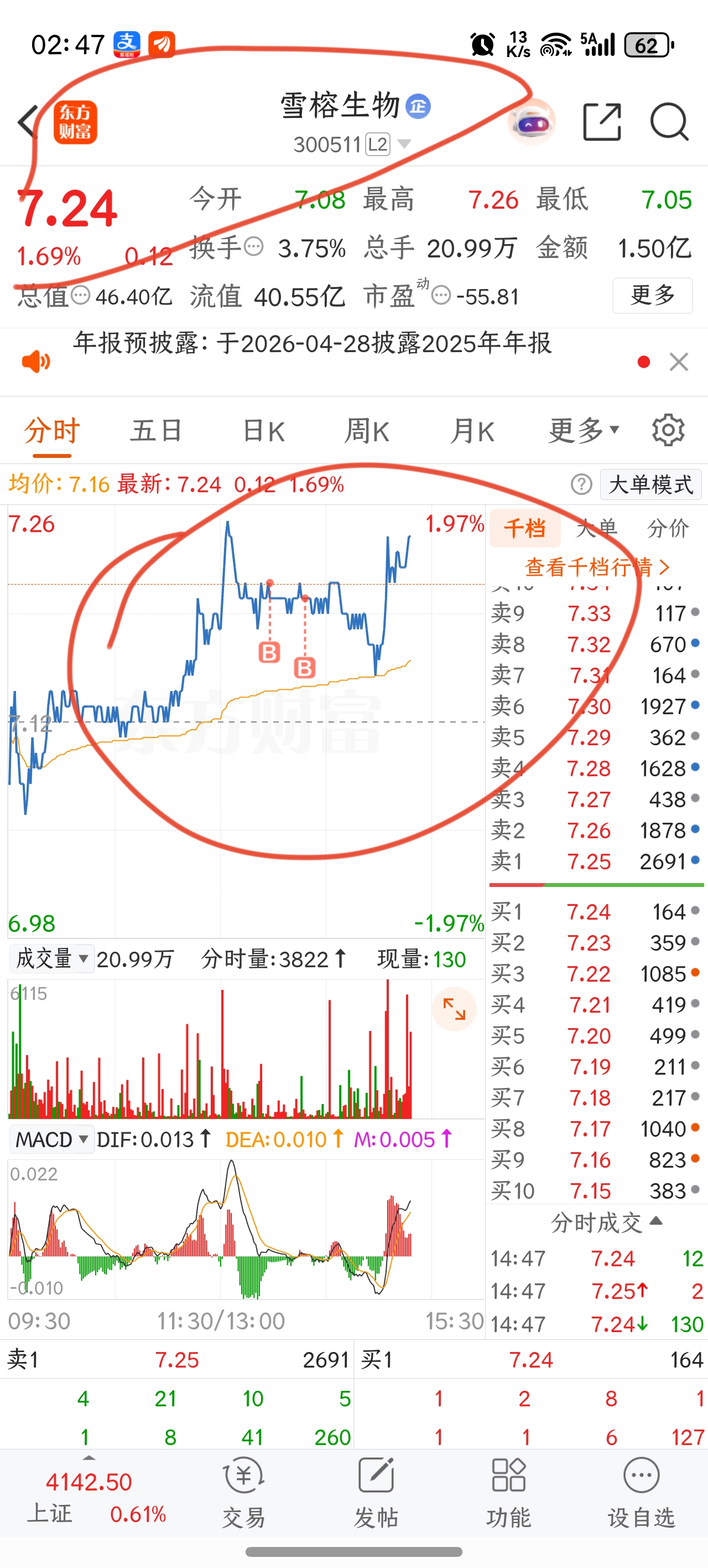 唉!英飞拓也卖飞了,荫降也涨了,没地方去啊,又回到雪榕生物,看能不能吃点肉。