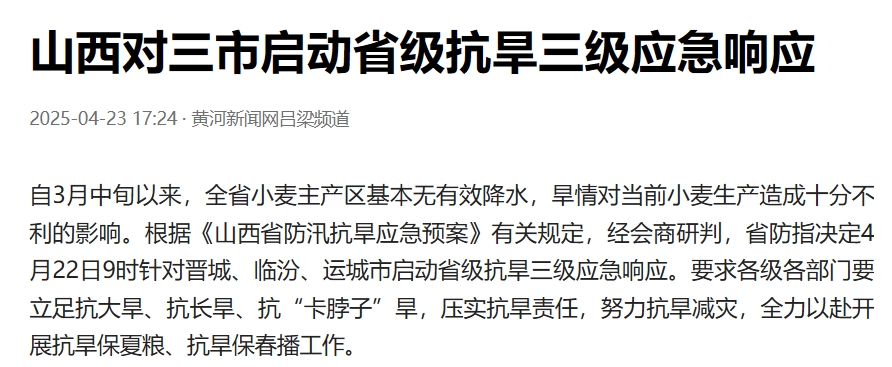 $大禹节水(SZ300021)$ 不仅广西,陕西和山西都有抗旱需求