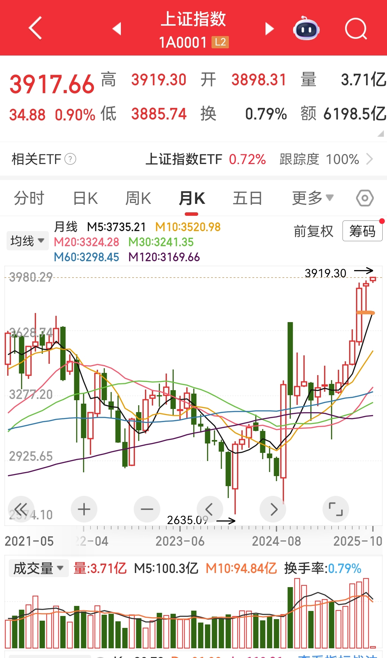 本月低点4.44,懂得都懂!看看大盘月线一目了然