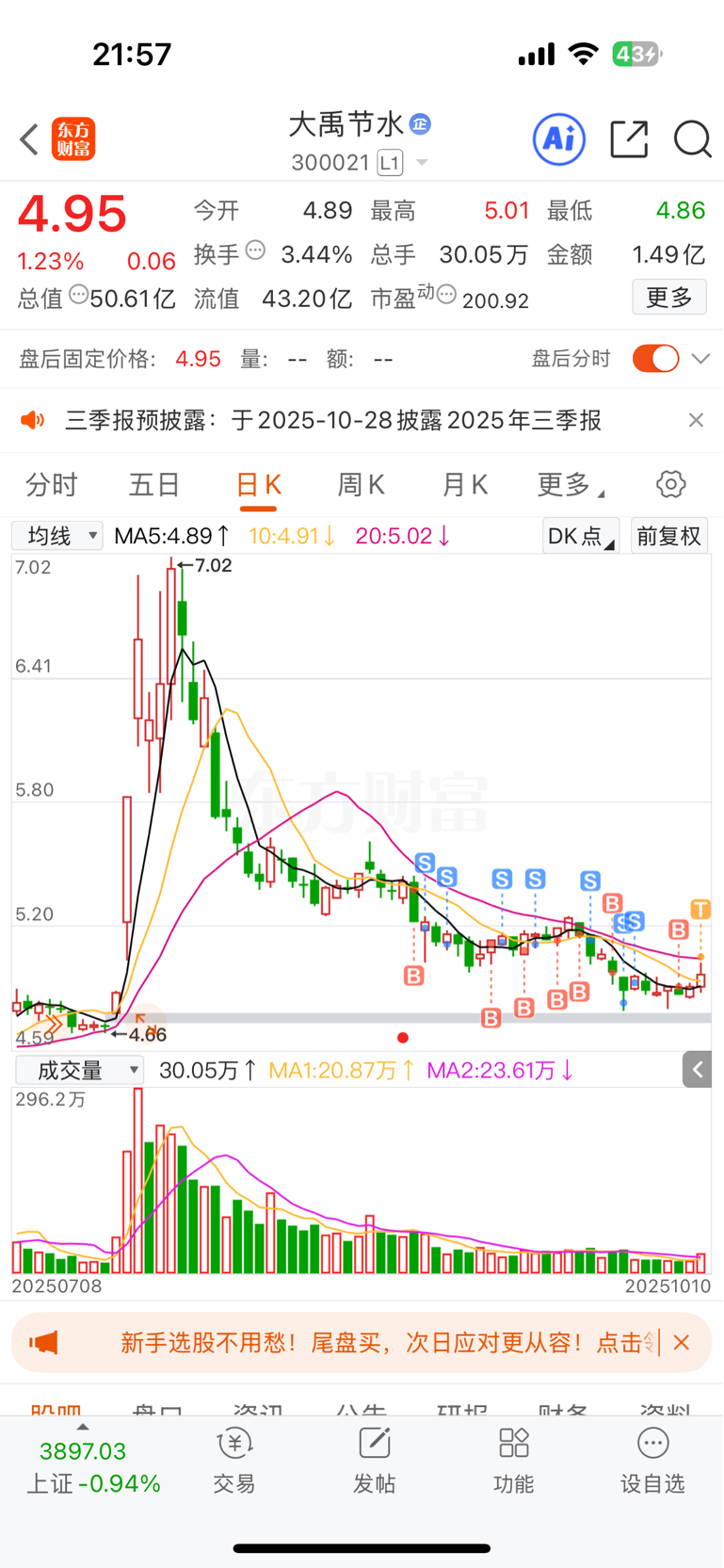 $大禹节水(SZ300021)$ 周一来个大涨,把我洗出去吧,求求你了!