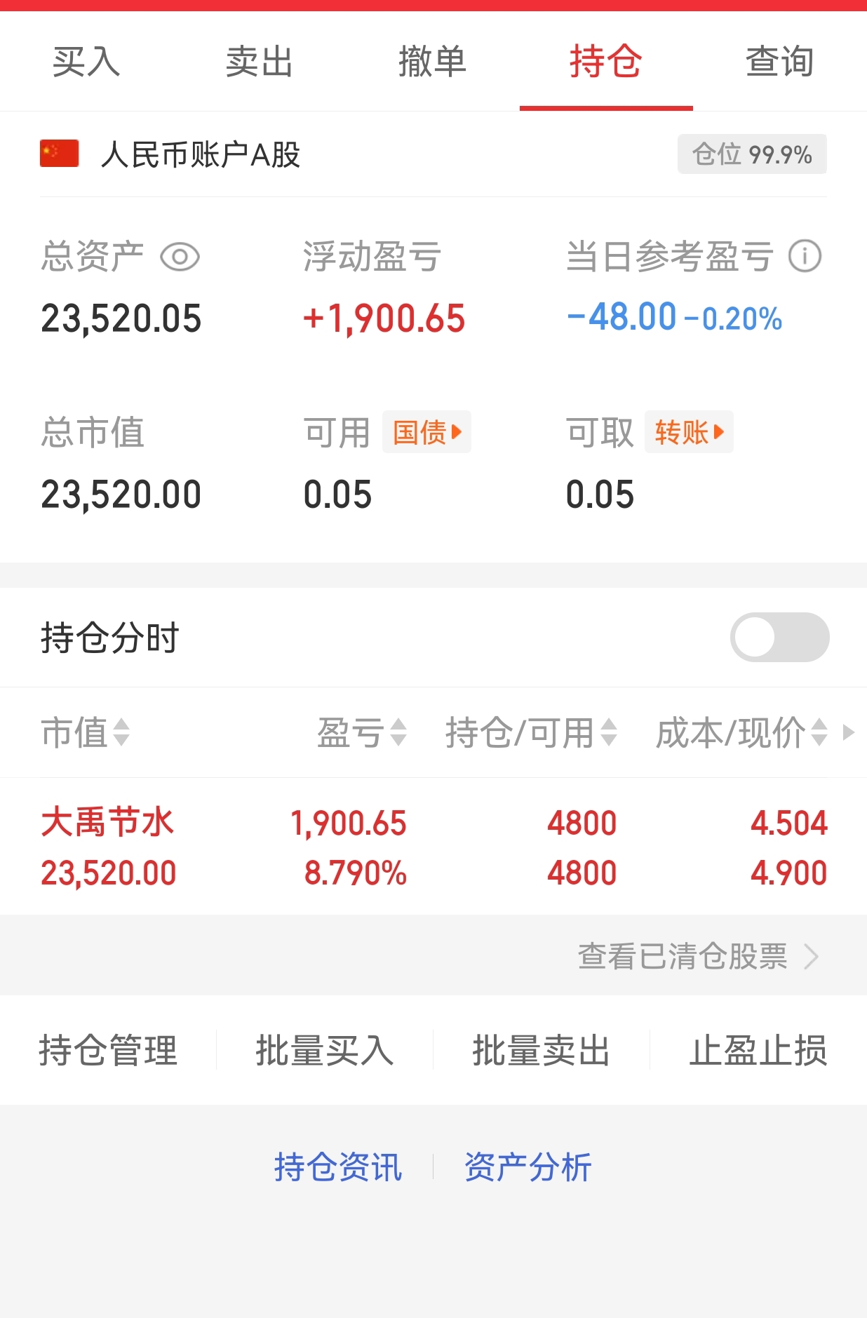 $大禹节水(SZ300021)$ 集合竞价4.5吃到肉了