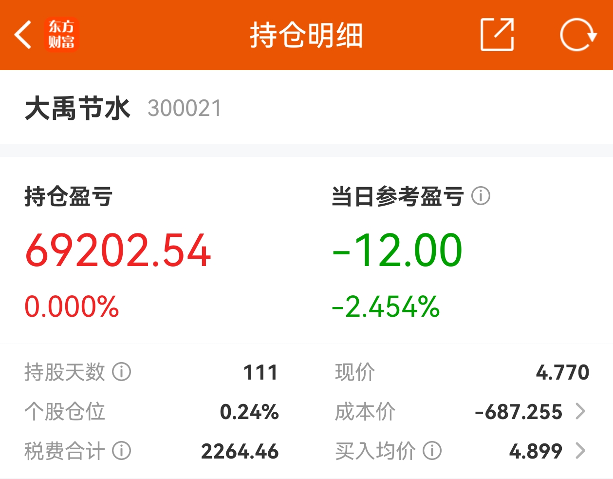 $大禹节水(SZ300021)$ 本来盈利十多万,现在只剩下7万不到了,快管不住手想进来了