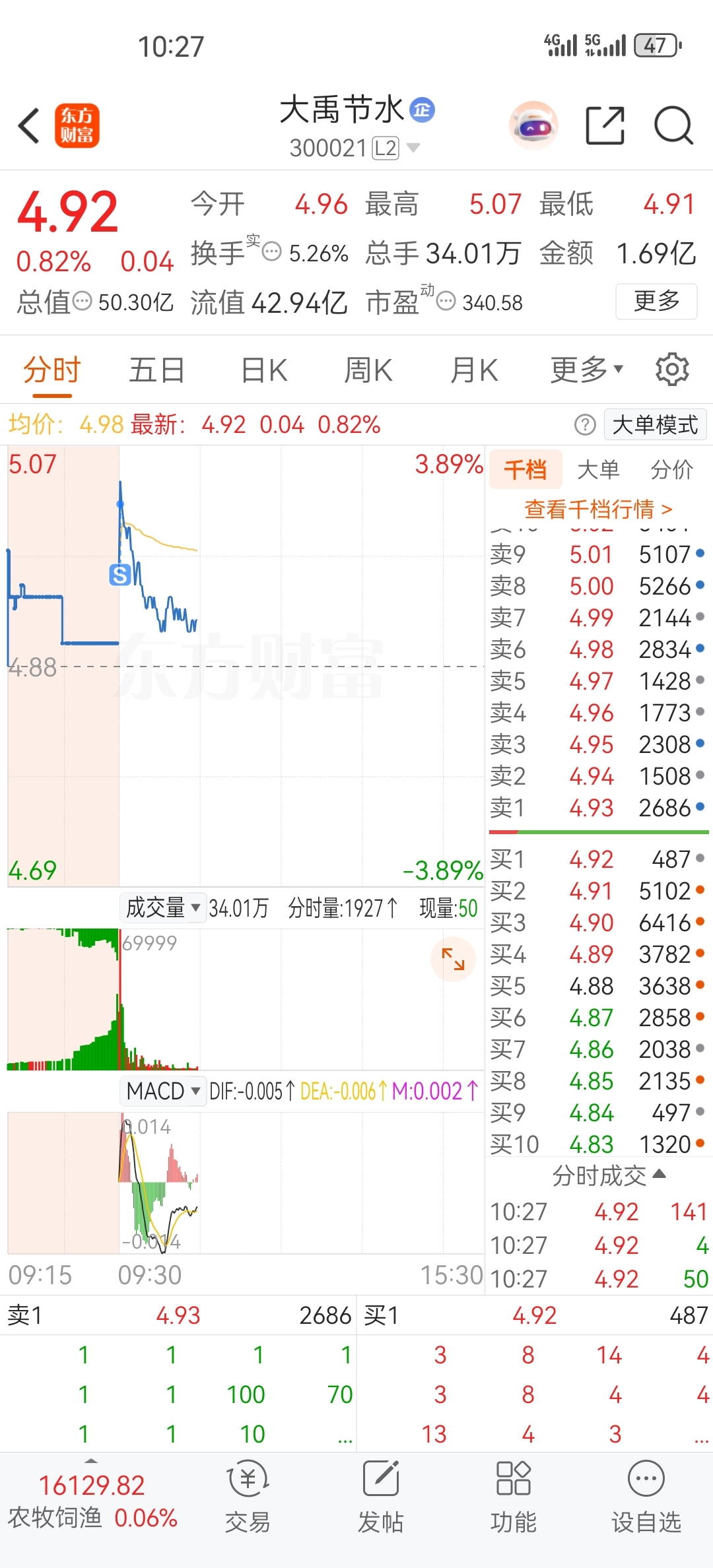 $大禹节水(SZ300021)$ 冲高卖准没错