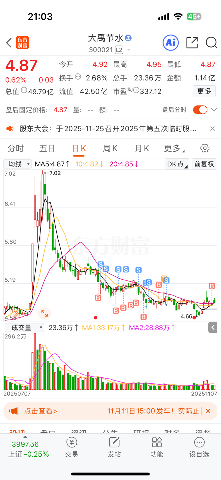 $大禹节水(SZ300021)$ 再不涨,真熬不住了!大盘涨三个月,你跌三个月!走了不甘心!