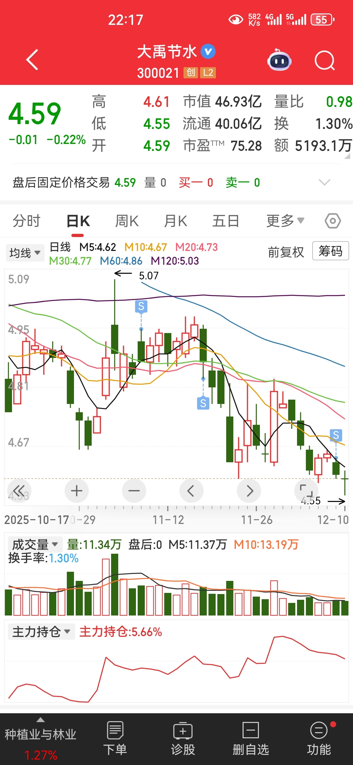 $大禹节水(SZ300021)$ 明天给力点,争取4.44一步到位,把筹码全部收回来
