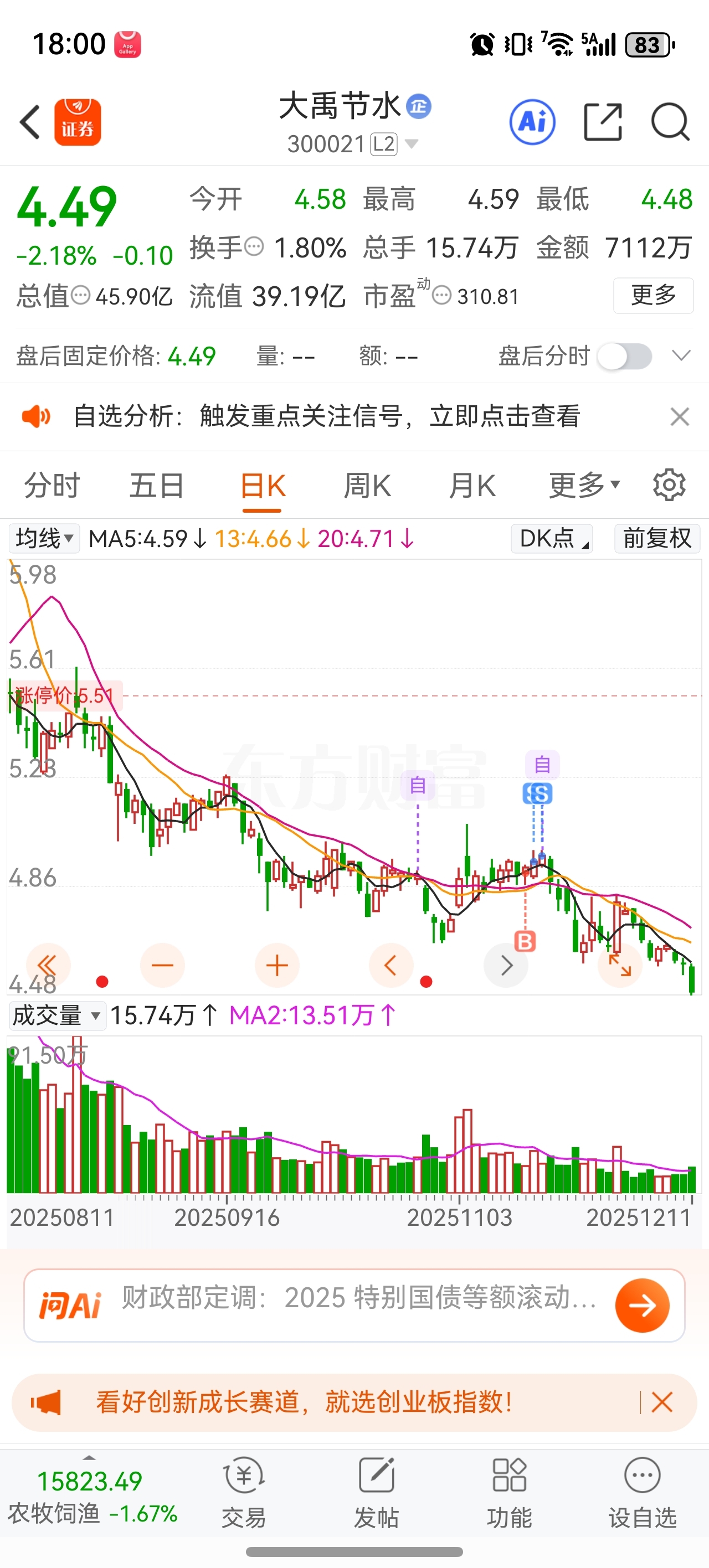 $大禹节水(SZ300021)$ 速度 准备抄底动手