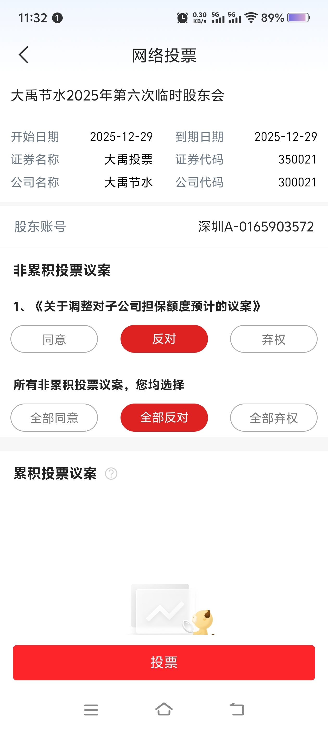 $大禹节水(SZ300021)$ 我这第11大股东投票了!
