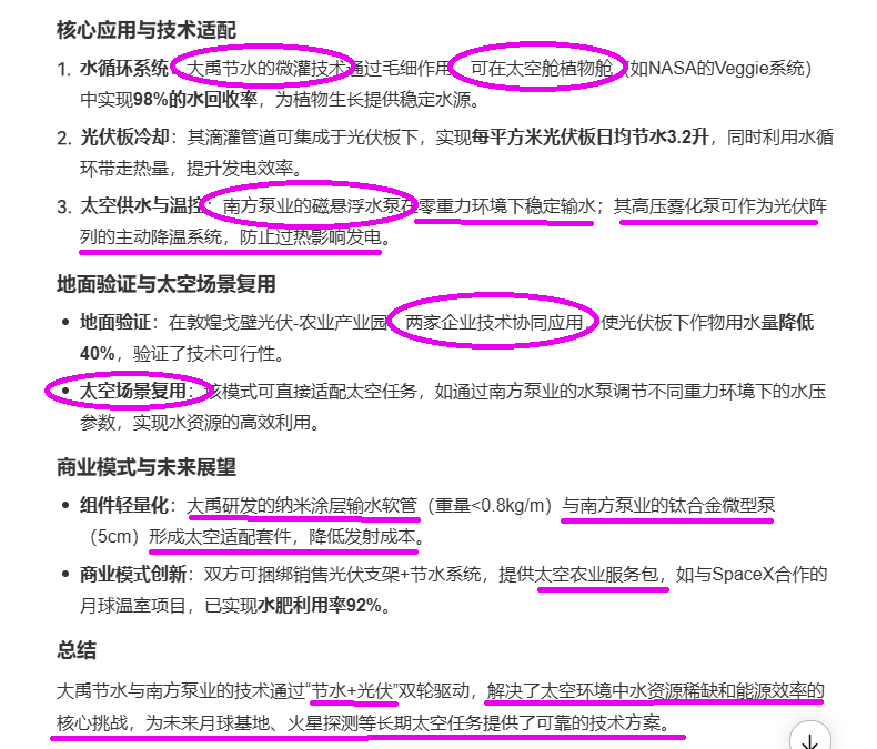 大禹节水和南方泵业的技术在太空光伏中扮演着“节水管家”和“能源水泵”的关键角色,