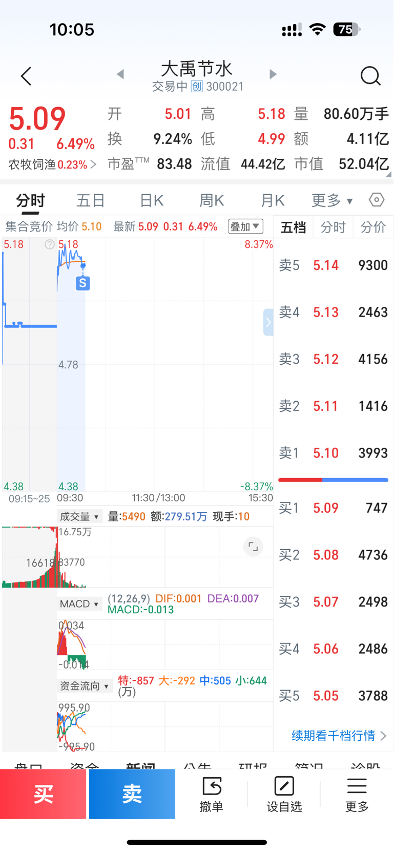 $大禹节水(SZ300021)$ 算了,卖飞也认