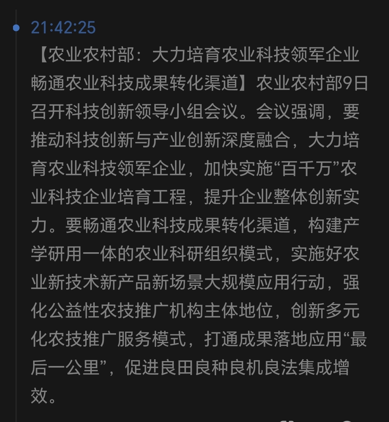 农业农村部:大力培育农业科技领军企业畅通农业科技成果转化渠道