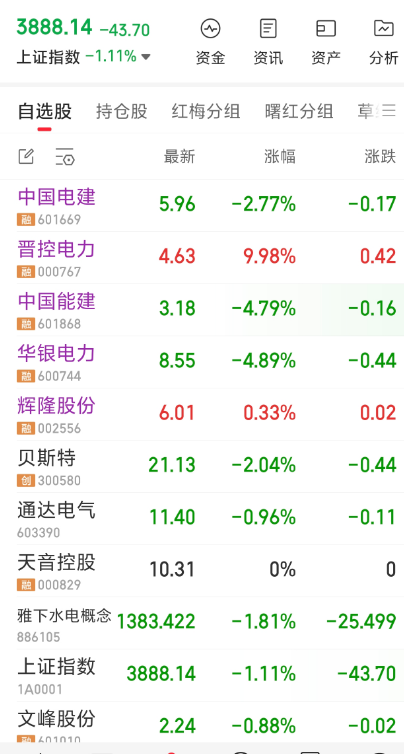 清仓晋控电力 盈利30个点 清仓中国电建盈利5个点 入中国能建本3.19 入华银电力本8.57 入辉隆股份本6.07