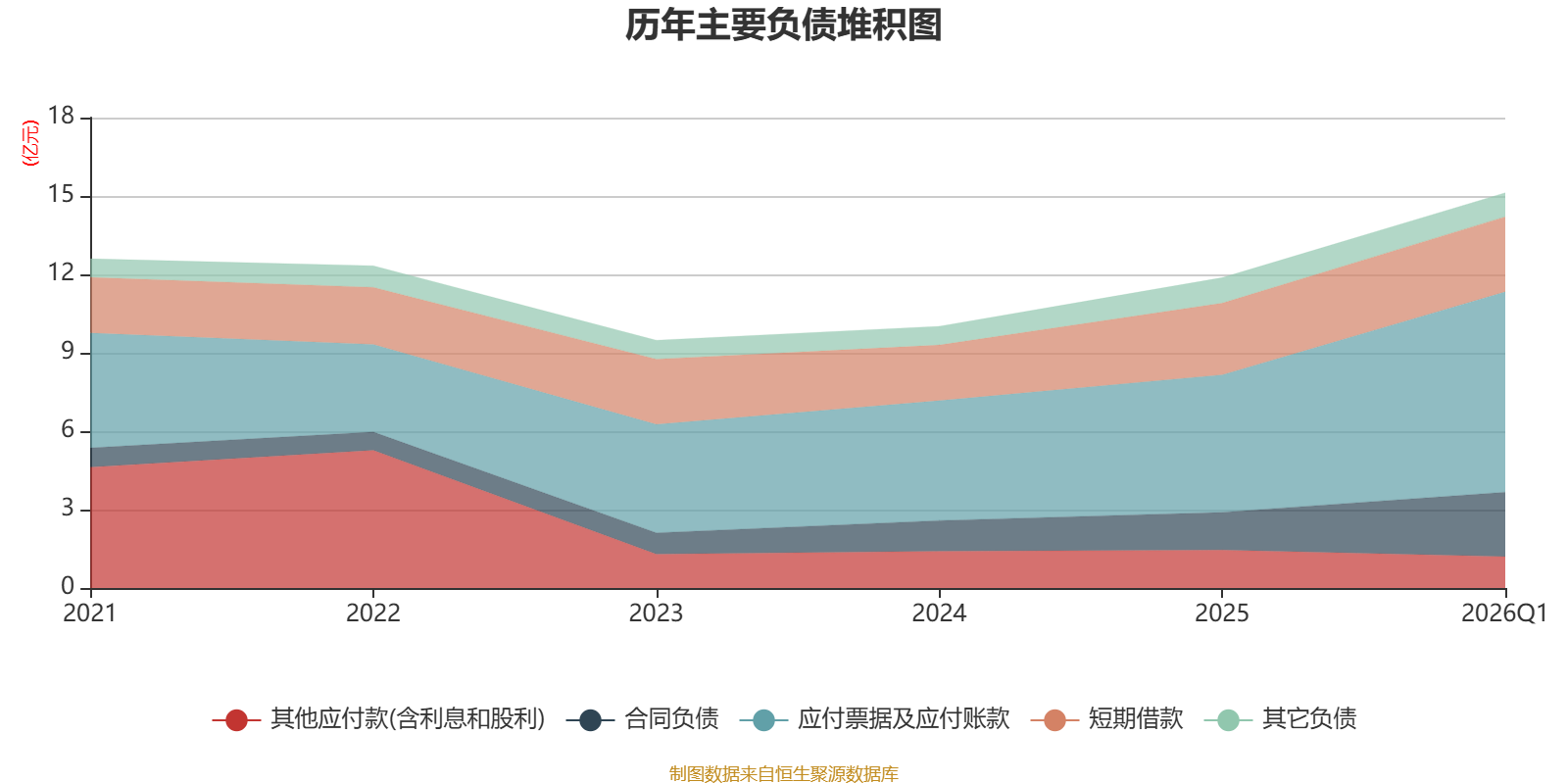 负债重大变化方面,截至2026年一季度末,公司应付票据及应付账款较上年末增加45.77%,占公司总资产比重上升6.5个百分点;合同负债较上年末增加69.93%,占公司总资产比重上升3.29个百分点;其他应付款(含利息和股利)较上年末减少17.02%,占公司总资产比重下降2.09个百分点;短期借款较上年末增加4.73%,占公司总资产比重下降1.41个百分点。