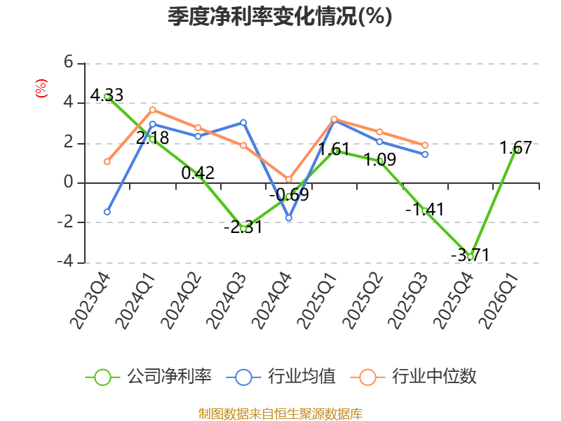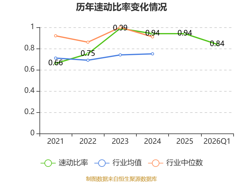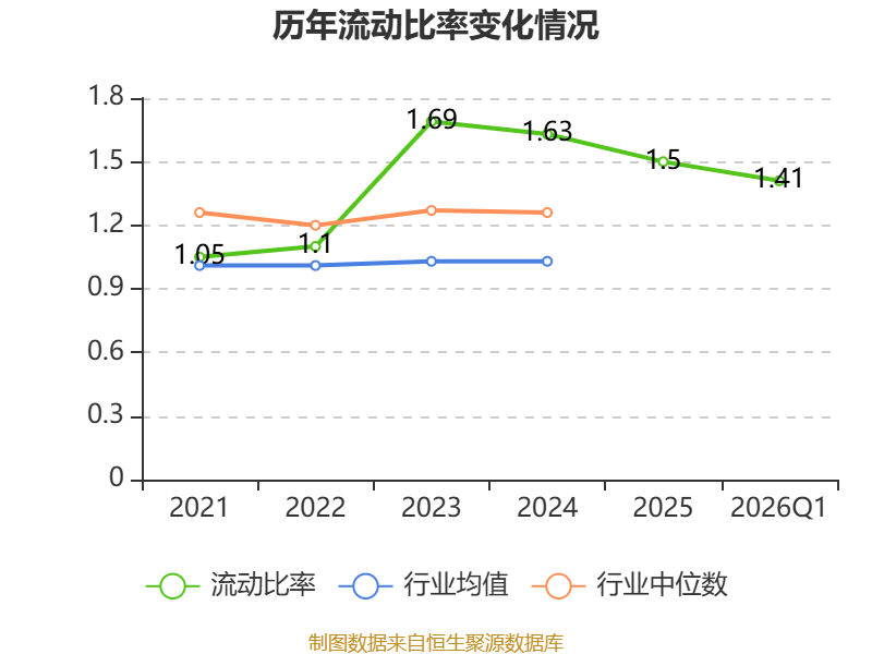 2026年第一季度,公司流动比率为1.41,速动比率为0.84。