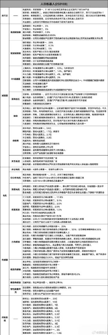 最全人性机器人产业链